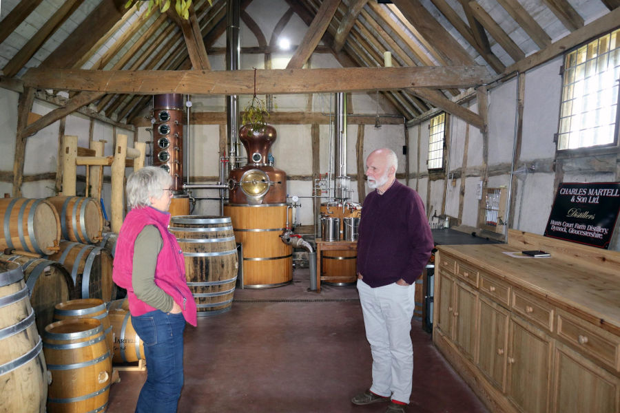 Charles had already been to visit us at Fair Oak to watch the Gypsy Cobs working our mill; and so when our original distiller, Mike Hardingham, retired we decided to go and visit the Martell distillery at Dymock, just over the border in Gloucestershire.